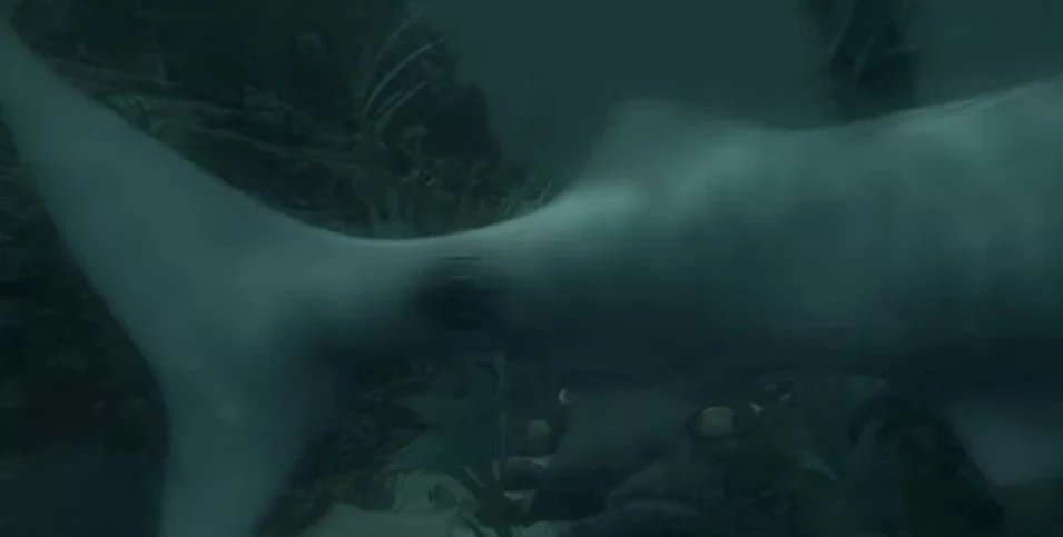 At one moment, a glimpse of the shark's tail underwater was seen. The Shark had an unknown DHARMA logo on its tail, indicating a connection to the DHARMA initiative. In the Swan Orientation Film, one of the topics listed as being studied through the DHARMA Initiative is zoology, which may account for the shark. It should be noted that this logo is very likely the normal DHARMA logo.